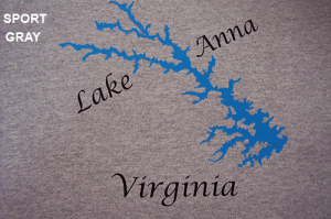 Enjoy this quality made tee shirt with the exclusive vinyl imaging of Lake Anna on your choice of colored shirt.