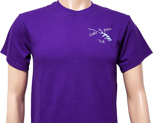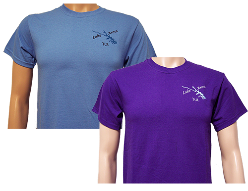 Enjoy this quality made tee shirt with the exclusive ‘Lake Anna VA’ embroidery on your choice of colored shirt. Color of text depends on color of shirt – light will be in black and dark will be in white. Different shirt colors can also be ordered. Call for your custom color.